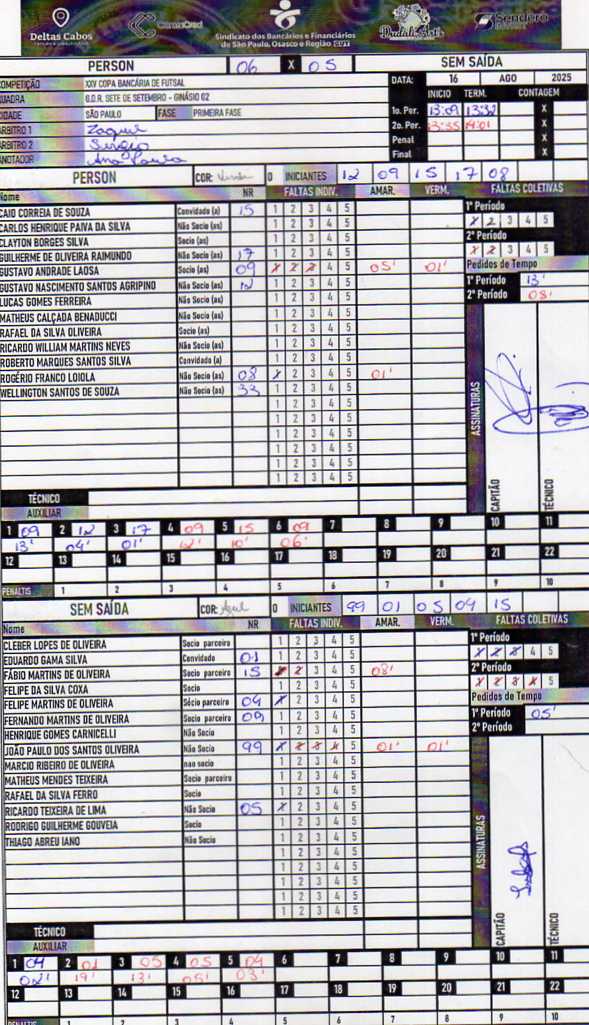 Na primeira etapa, o Person conseguiu prevalecer, impondo um jogo de intensa troca de passes que envolveu o adversário, criando diversas oportunidades de gol e garantindo uma boa vantagem de 3 a 1 antes do intervalo. Porém, na volta para o segundo tempo, o Sem Saída fez jus ao nome: adiantou a marcação e passou a dificultar a construção das jogadas do oponente. A dinâmica da partida mudou completamente, e o time dos irmãos Oliveira chegou muito perto de igualar o placar. No entanto, o desgaste físico cobrou seu preço nos minutos finais, e o triunfo acabou ficando com a equipe do Itaú. A vitória, contudo, teve um gosto agridoce, já que o time perdeu seu artilheiro Gustavo, expulso no fim do jogo e desfalque certo para o próximo compromisso.